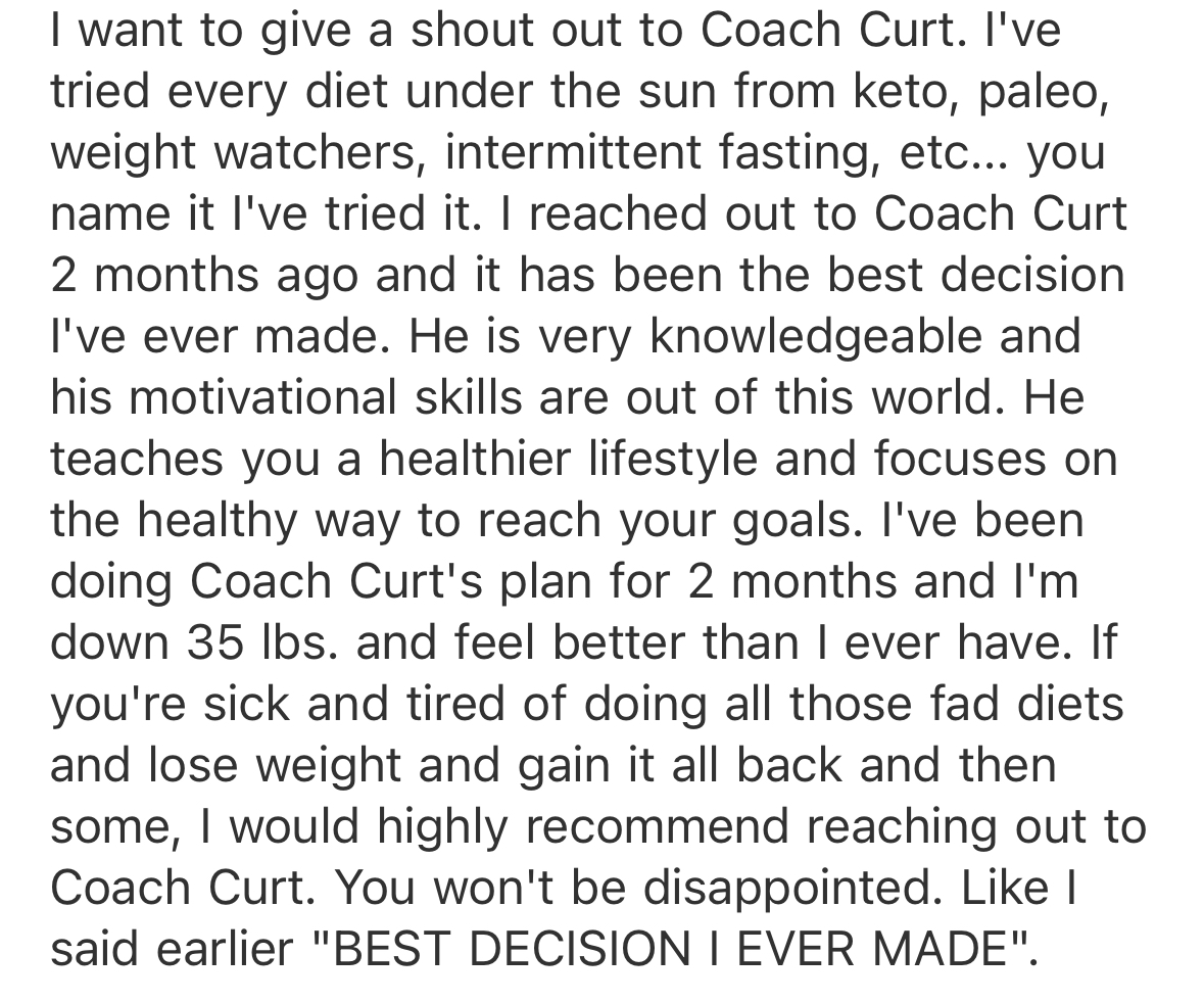 Throughout my programs you will learn how real fat loss works. How its deeper than just calories in and calories out, and how you can finally burn fat and optimize your health.